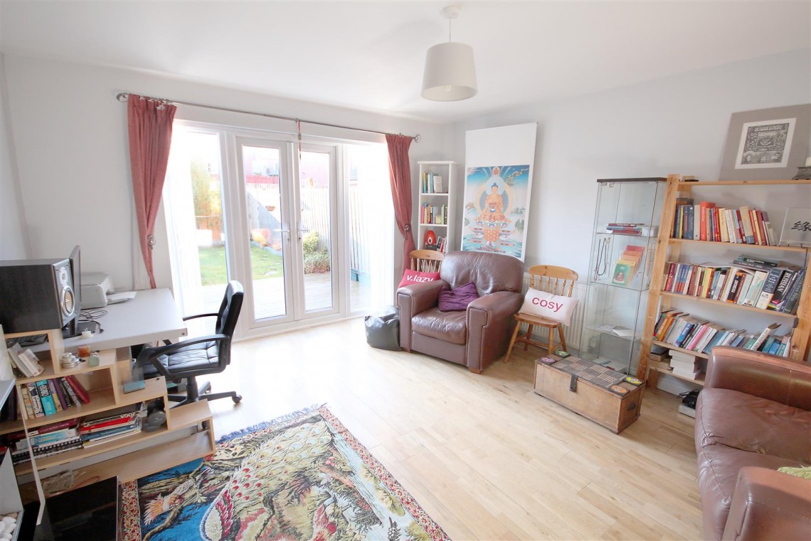 Wonderfully bright living space enjoying views to the garden through rear facing double glazed UPVC french doors. Having laminate flooring, electric fireplace and gas central heating radiator.