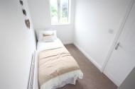 Generously proportioned Master Bedroom enjoying a front facing UPVC double glazed window. Also having carpeted floor, gas central heating radiator and access to the loft via ceiling hatch. Includes a double bed, bedside drawer unit and chest of drawers.