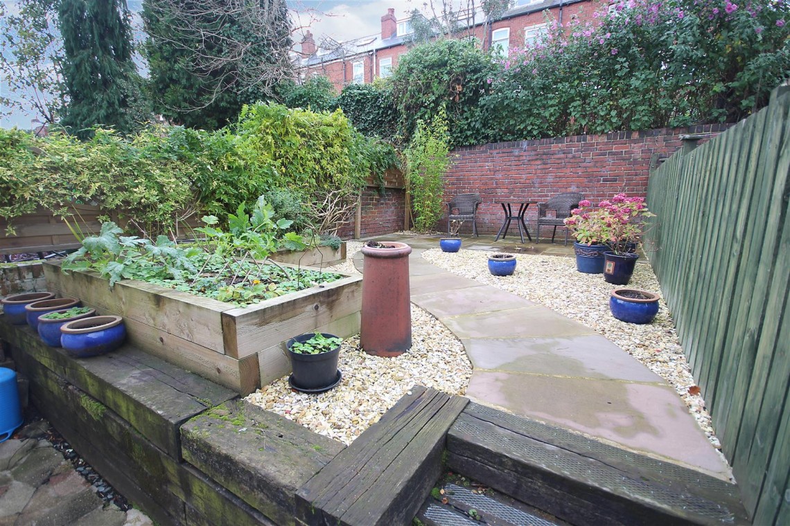 To the rear of the property is a private low maintenance tiered garden which has raised planters and a paved patio area.