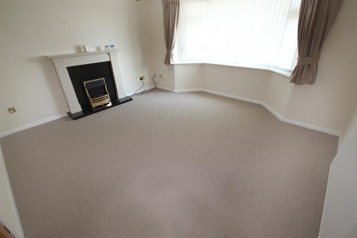 Well proportioned and neutrally decorated living space having UPVC double glazed bay window, gas central heating radiator, carpeted flooring, coving, ceiling rose, TV aerial and electric feature fireplace.