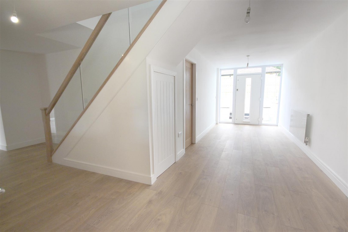 Entry through part glazed composite door into the large entrance hallway. Having laminate flooring, two gas central heating radiators and two UPVC double glazed windows filling the hall with natural light. Also having carpeted staircase with LED lights rising to the first floor accommodation, and useful under stair storage.